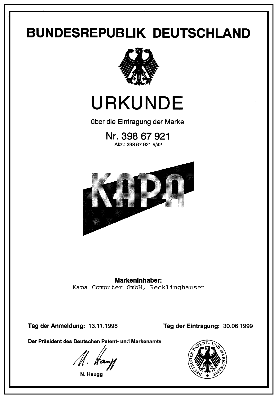 Es ist soweit! Die Marke KAPA ist ab heute offiziell eingetragene und geschütztes Markenzeichen der KAPA Computer GmbH.